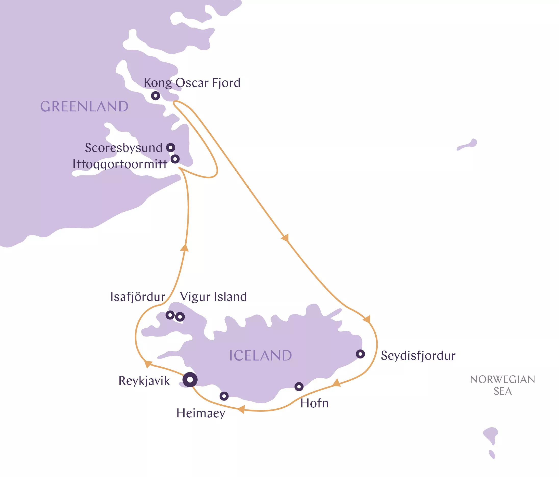 Experience the wild and fantastic landscapes of Iceland and East Greenland on our 13-day Iceland and Eastern Greenland cruise. Circumnavigate Iceland, the land of fire and ice, accompanied by breaching whales, and discover the phenomena of fjords, spectacular waterfalls and never ending volcanic scenery.