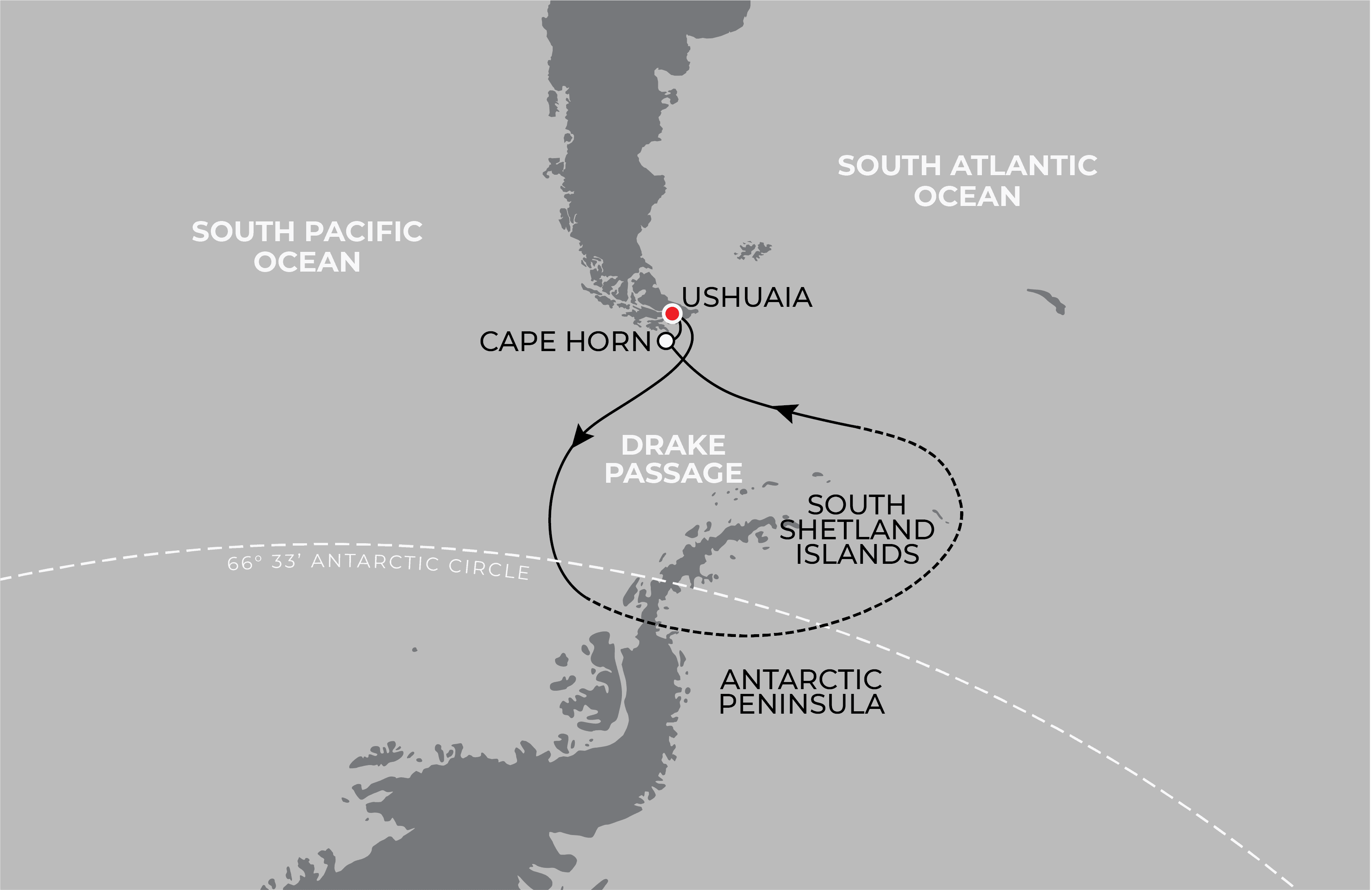 The longer voyages; 11 and 12 nights - make their way beyond the Antarctic Circle (weather and ice permiting). The 14 night voyages take you the to the South Georgia Islands.