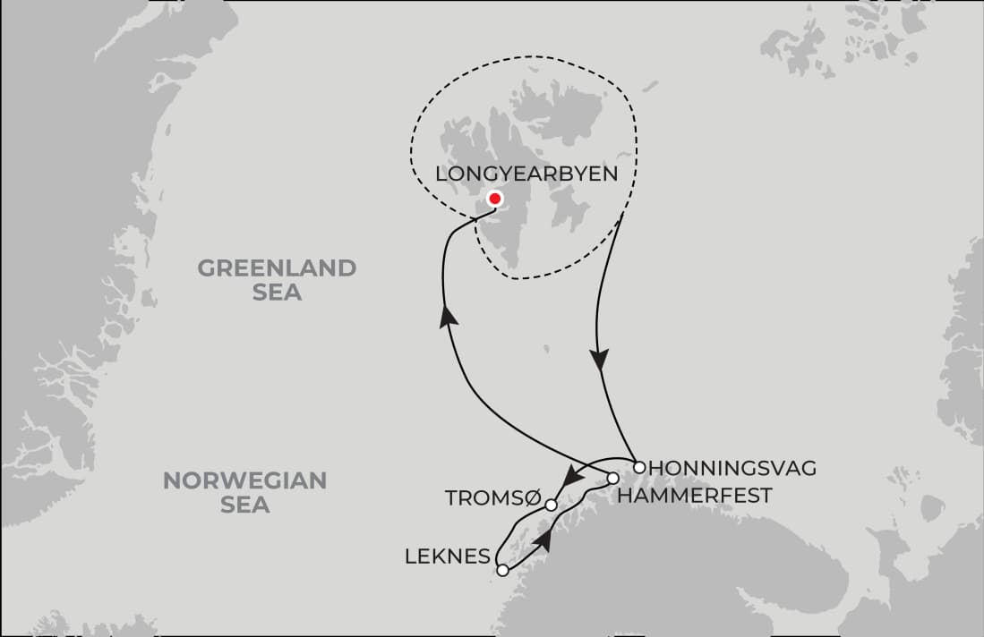 Explore the remote reaches of the Arctic with an expedition through Svalbard, home of the elusive polar bear, reindeer and other incredible wildlife. With an overnight in Tromsø, there’s time to visit the architectural marvel of the Arctic Cathedral made to blend into the natural setting, take the Fjellheisen cable car up for stunning views of the Norwegian fjords or stroll around the Arctic-Alpine Botanical Garden. Your Captain will expertly navigate Trollfjord, the Lofoten and Vaerøy Islands and the Inside Passage.
