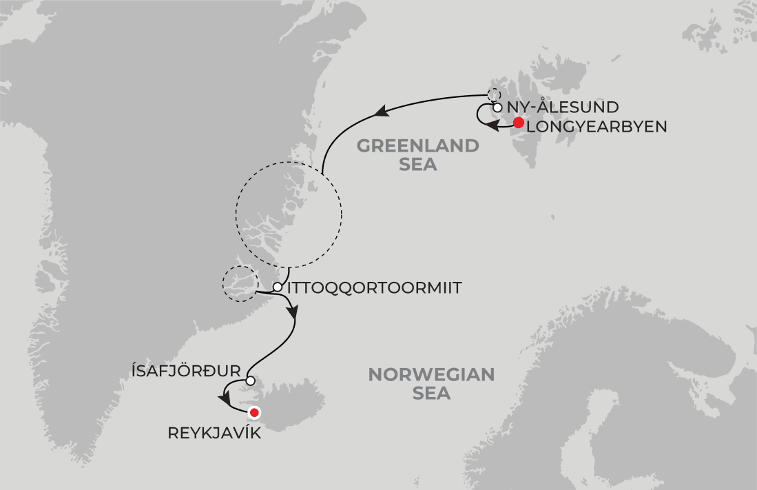 With landings in small, remote villages like Ny-Ålesund and Ittoqqortoormiit, this expedition will bring out a sense of discovery in you. Staying overnight in Reykjavík, you have the opportunity to dive further into this world-famous city’s history and culture, like catching a performance of the Iceland Symphony Orchestra at the Harpa Concert Hall.
