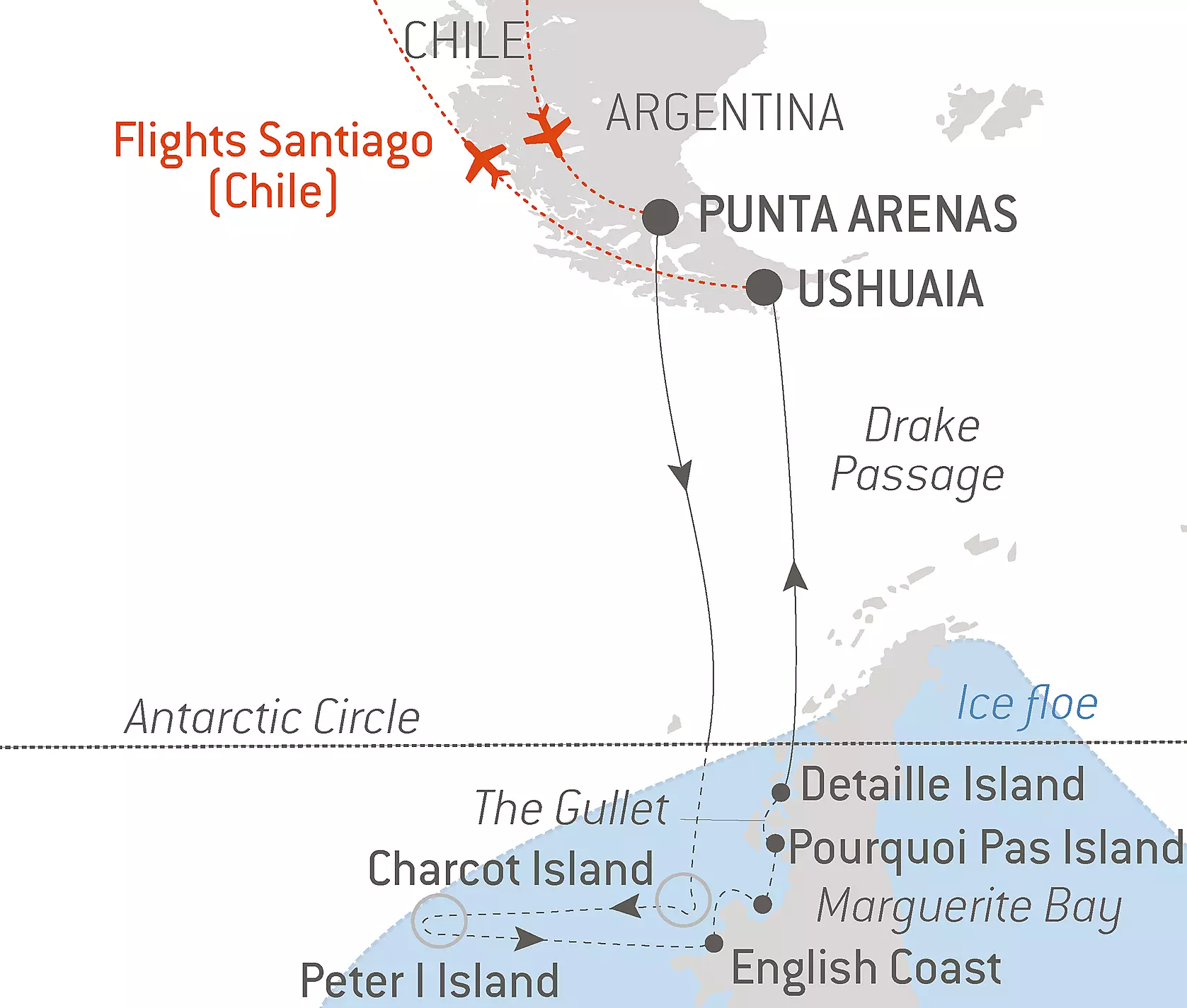 Beyond Peter I Island and Charcot Island, this exceptional cruise will take you into the heart of the Bellingshausen Sea: covered by ice floe most of the time, is hard to reach and practically unexplored. But the reward lives up to the challenge: Emperor Penguins, a unique species endemic to the Antarctic and almost never observed live here. This animal, elegant and majestic, is the promise of emotional encounters. In this season, as winter gradually gives way to the austral spring, you may be lucky enough to catch a glimpse of the world's largest penguins wandering the ice floes on the horizon, or emancipated juveniles learning to swim as the southern summer approaches.