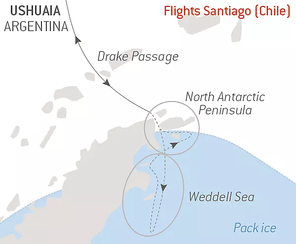 Travel on the most luxurious and modern icebreaker in the world south into the Weddell Sea for the the rarest wildlife and an endless ice desert. The Weddell Sea promises you intense emotions during a voyage of exploration aboard Le Commandant Charcot, your cocoon of comfort after a day of exploration. Visit the Snow Hill Emperor Colony on this ultimate quest with the promise of all-new, unforgettable encounters.